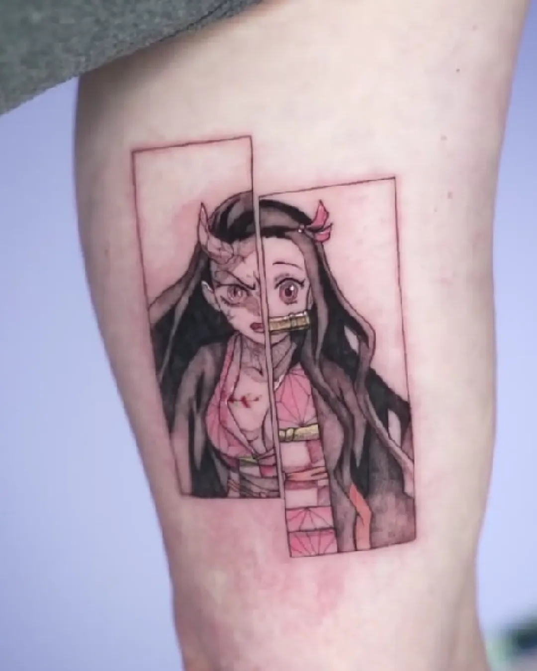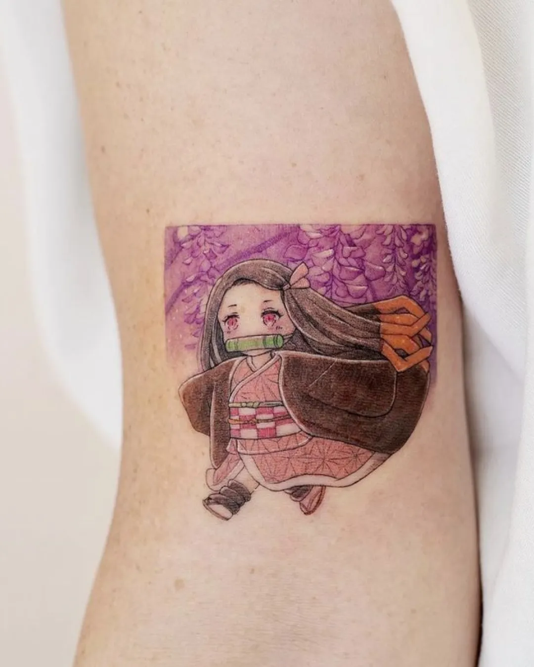 Color transforms Nezuko tattoos into vibrant statements. That distinctive pink kimono becomes the focal point, with artists carefully reproducing its specific shade. Her blood demon art, those pink flames that burn demons but protect humans create stunning visual opportunities with gradient work and flame effects.